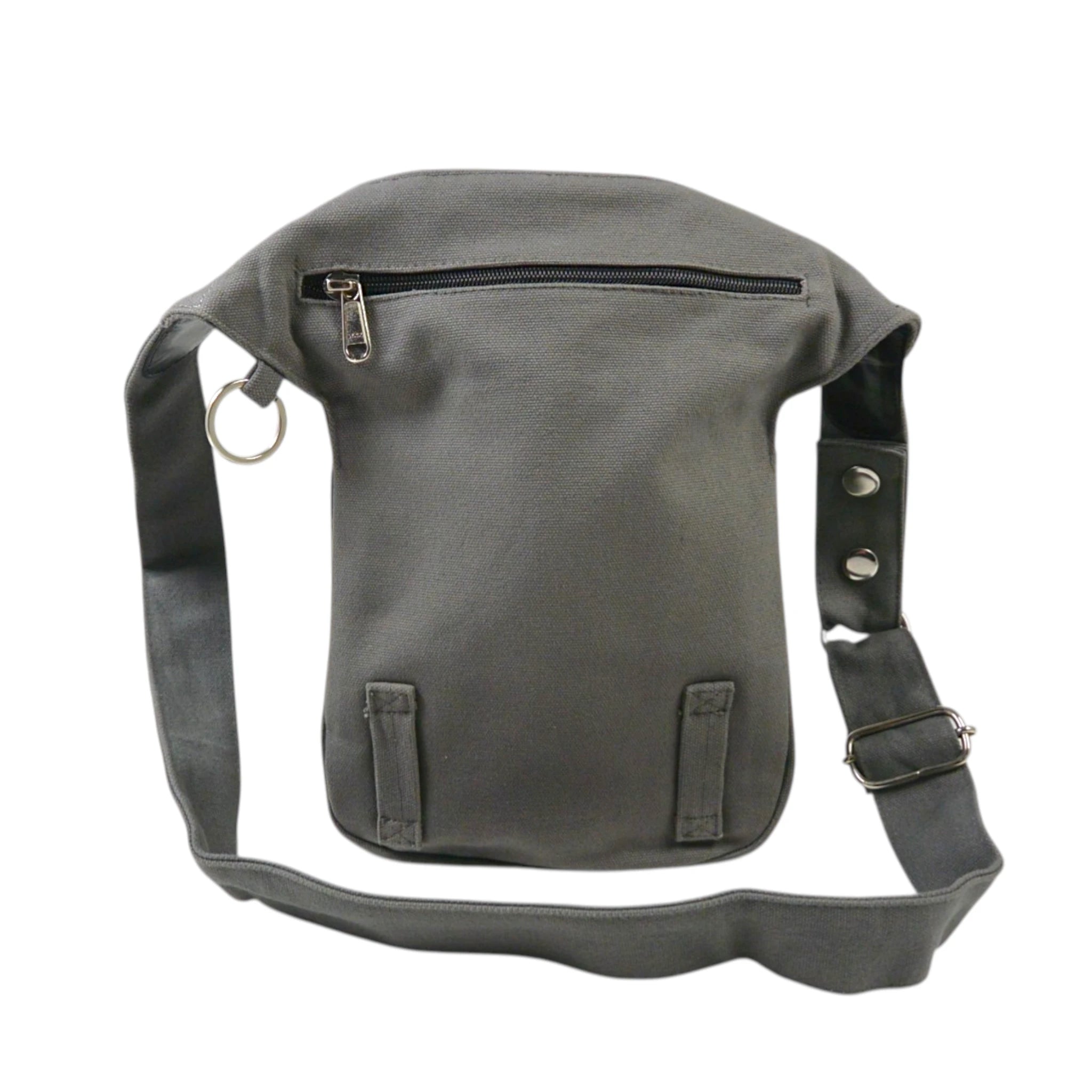 Neben einem weiteren Reißverschlussfach auf der Rückseite findest Du auf der vorderen Seite ein mit Druckknopf verschließbares Einsteckfach, das sich gut für Dein Handy eignet.