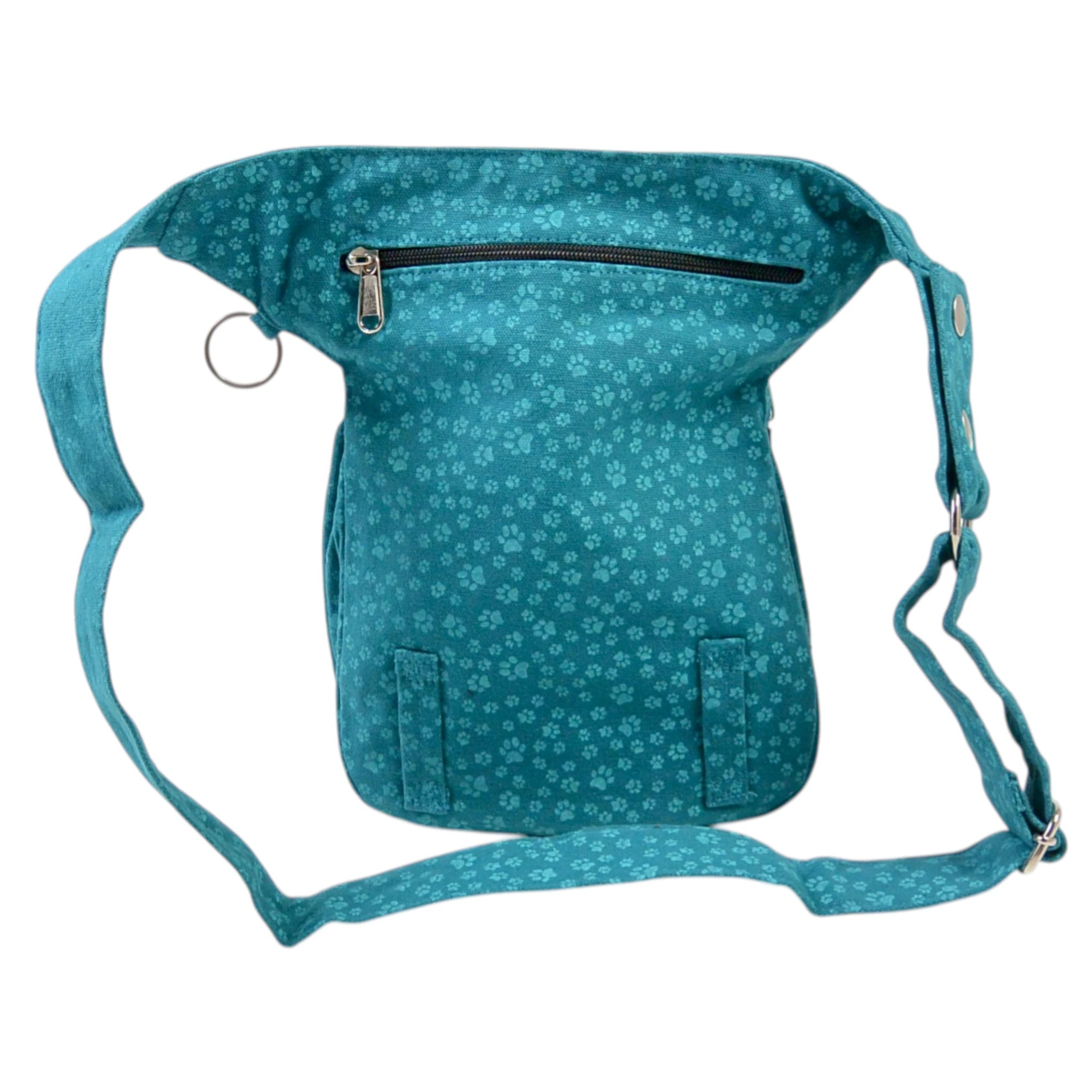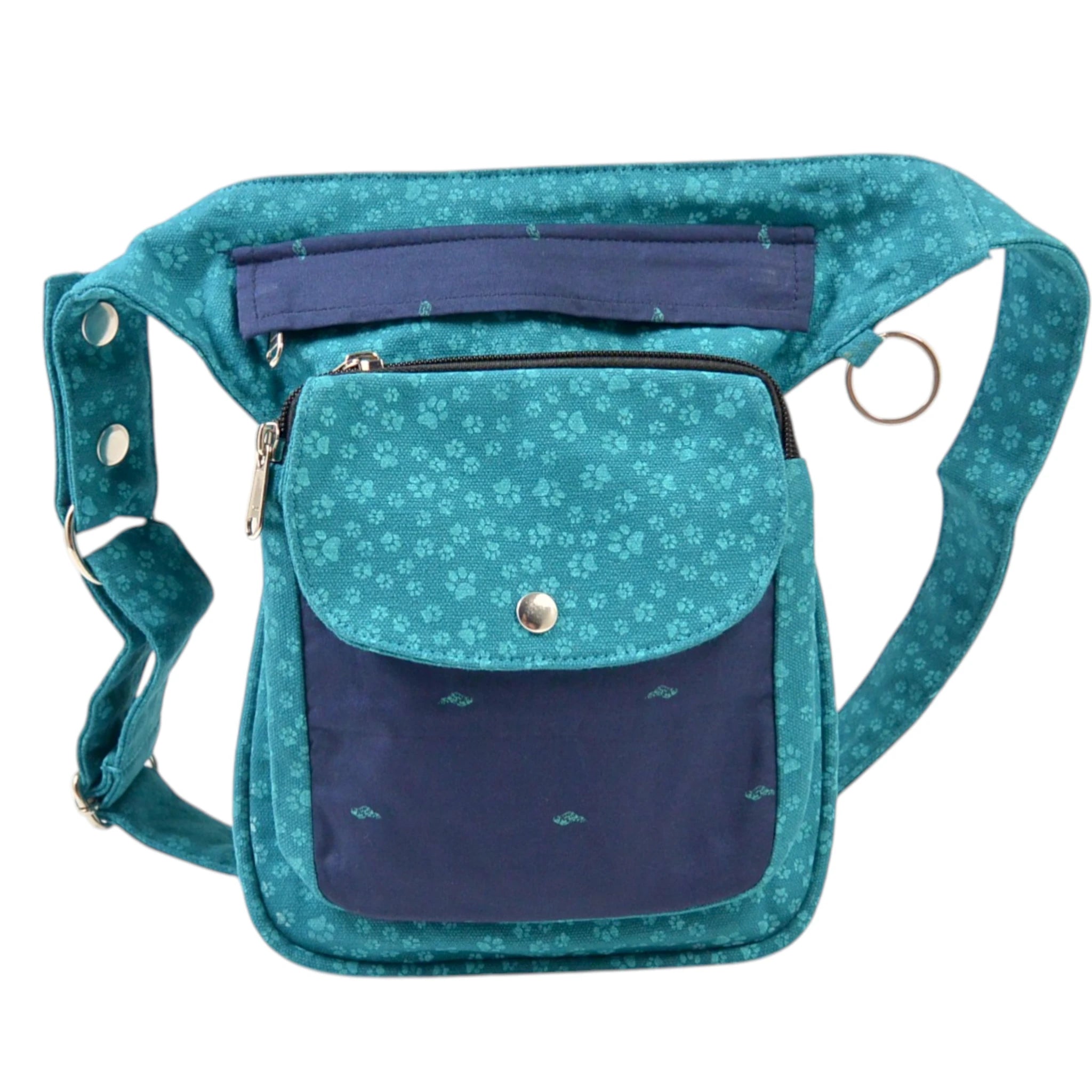 Besonders praktisch ist zudem ein separat aufgesetztes Fach auf der Vorderseite der Tasche, das mit wasserabweisendem Material gefüttert und mit einem Reißverschluss verschließbar ist. Es schützt den Rest Deiner Habseligkeiten vor den Rückständen der Trainings-Leckerlis. Diese Leckerlitasche kann nach außen umgekehrt und einfach gewaschen werden.
