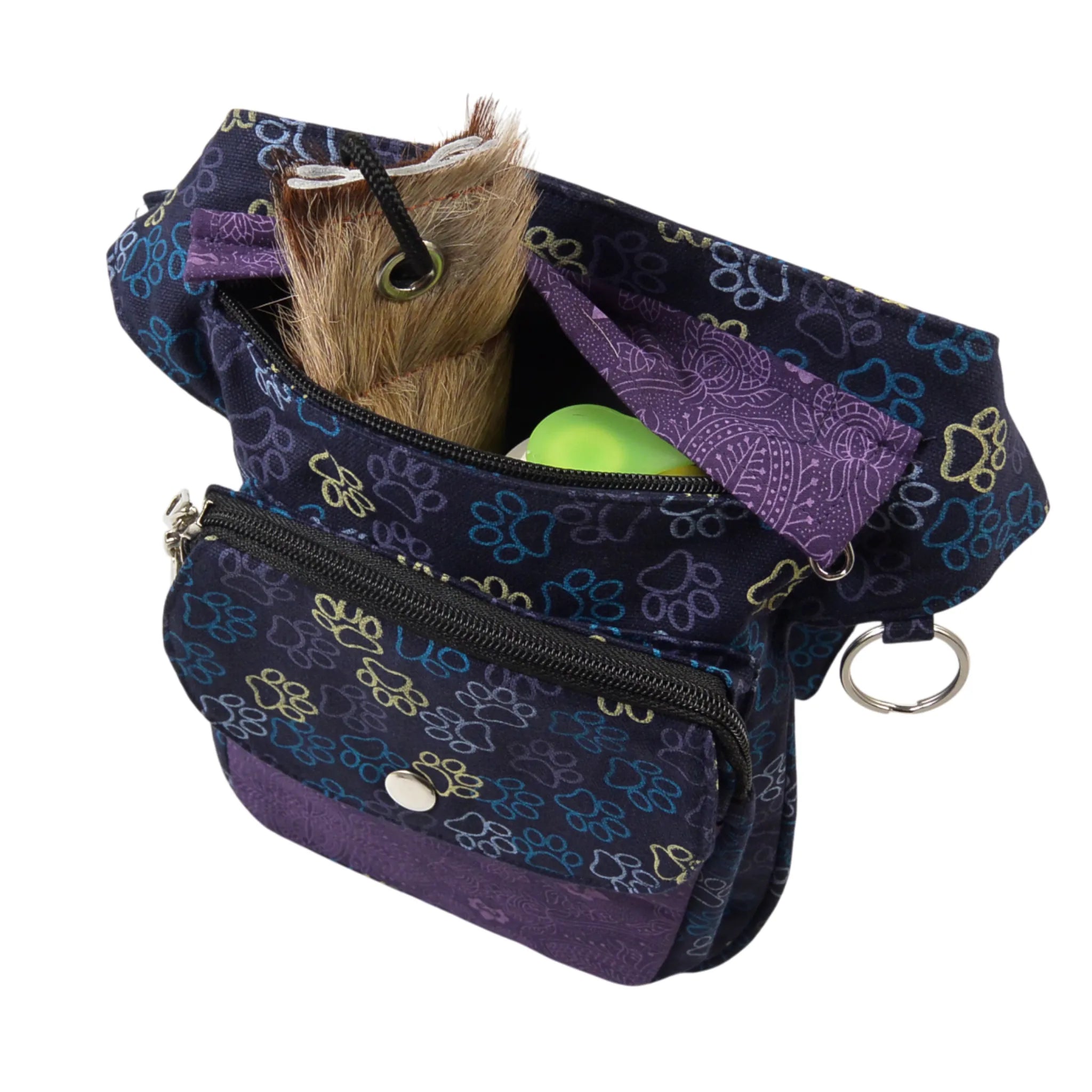 Besonders praktisch ist zudem ein separat aufgesetztes Fach auf der Vorderseite der Tasche, das mit wasserabweisendem Material gefüttert und mit einem Reißverschluss verschließbar ist. Es schützt den Rest Deiner Habseligkeiten vor den Rückständen der Trainings-Leckerlis. Diese Leckerlitasche kann nach außen umgekehrt und einfach gewaschen werden.