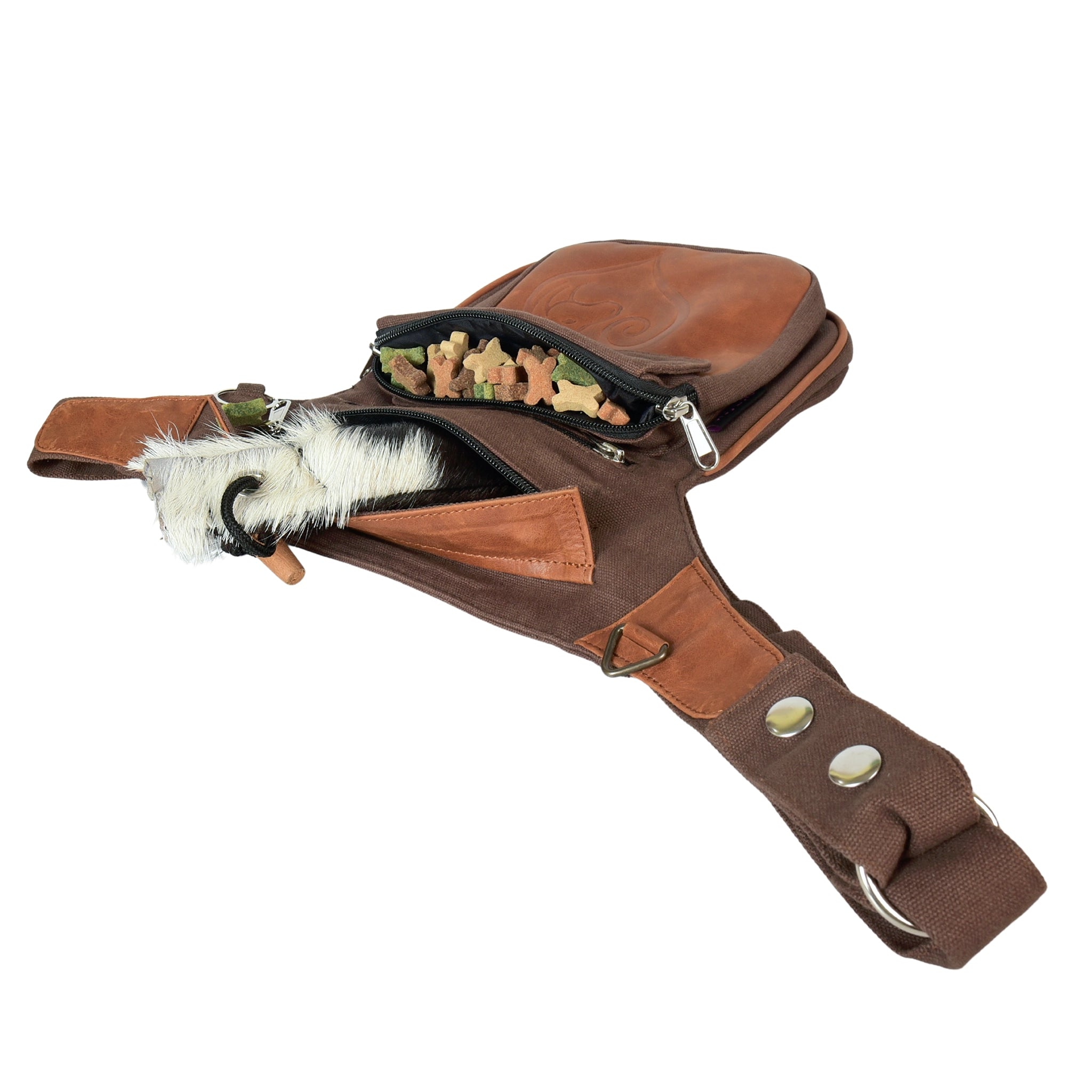 ✔️ 2 separate Leckerlitaschen (Reißverschluss + Druckknopf-Fach unter der Klappe)
