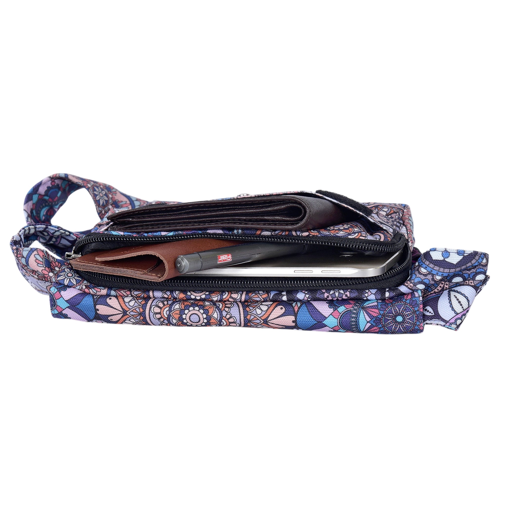 Diese klassische Hüfttasche ist ein echtes Raumwunder – leicht, bunt und perfekt organisiert. Mit vier durchdachten Fächern bietet sie Platz für Handy, Schlüssel, Geldbörse und alles, was du unterwegs brauchst. Der farbenfrohe Mandala-Print macht sie zu einem echten Blickfang – ob beim Spaziergang, auf Reisen oder beim Festival.