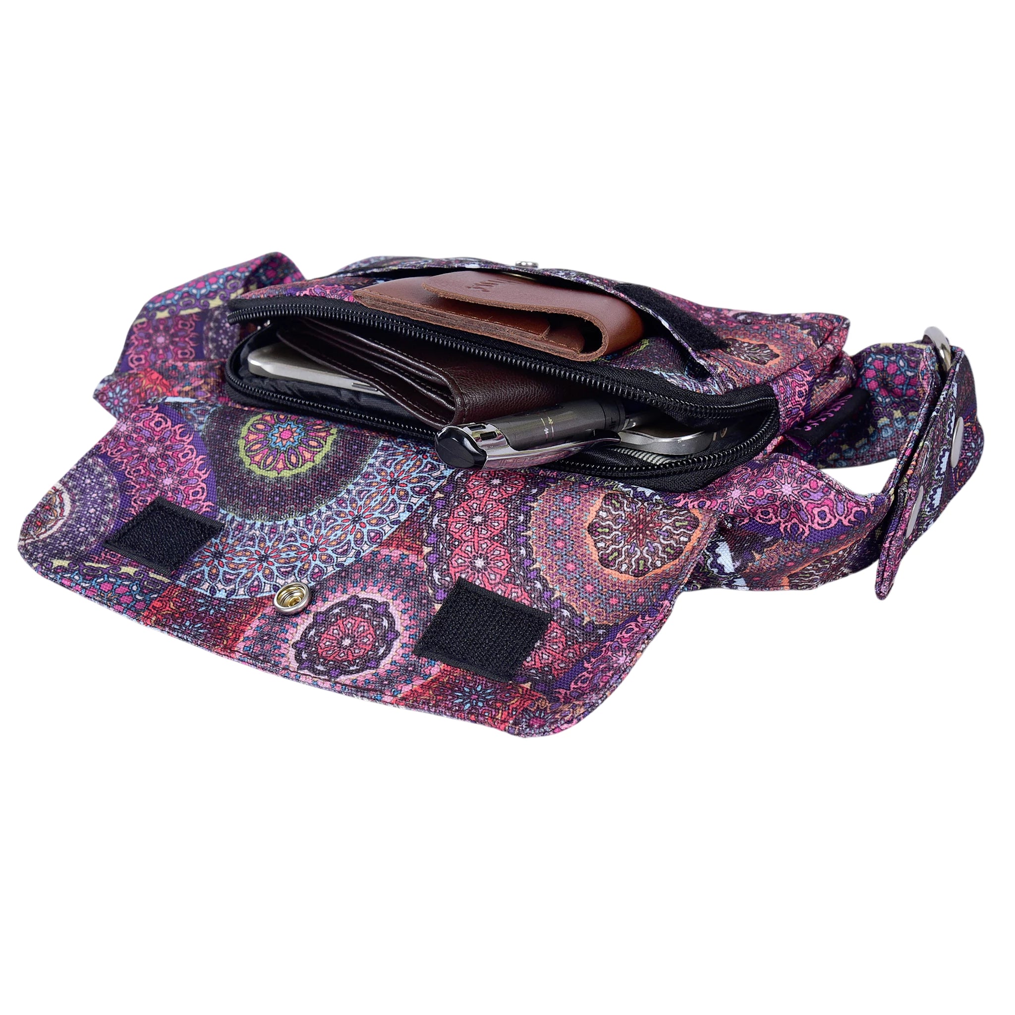 Diese klassische Hüfttasche ist ein echtes Raumwunder – leicht, bunt und perfekt organisiert. Mit vier durchdachten Fächern bietet sie Platz für Handy, Schlüssel, Geldbörse und alles, was du unterwegs brauchst. Der farbenfrohe Mandala-Print macht sie zu einem echten Blickfang – ob beim Spaziergang, auf Reisen oder beim Festival.