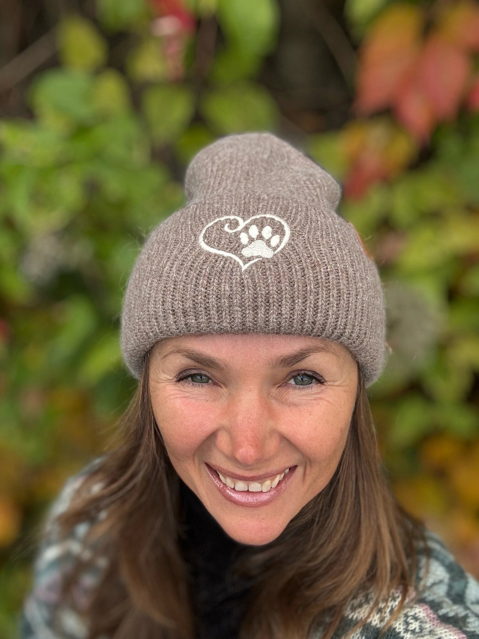 Angora Beanie – weich, warm & mit Pfote-Herz Stickerei