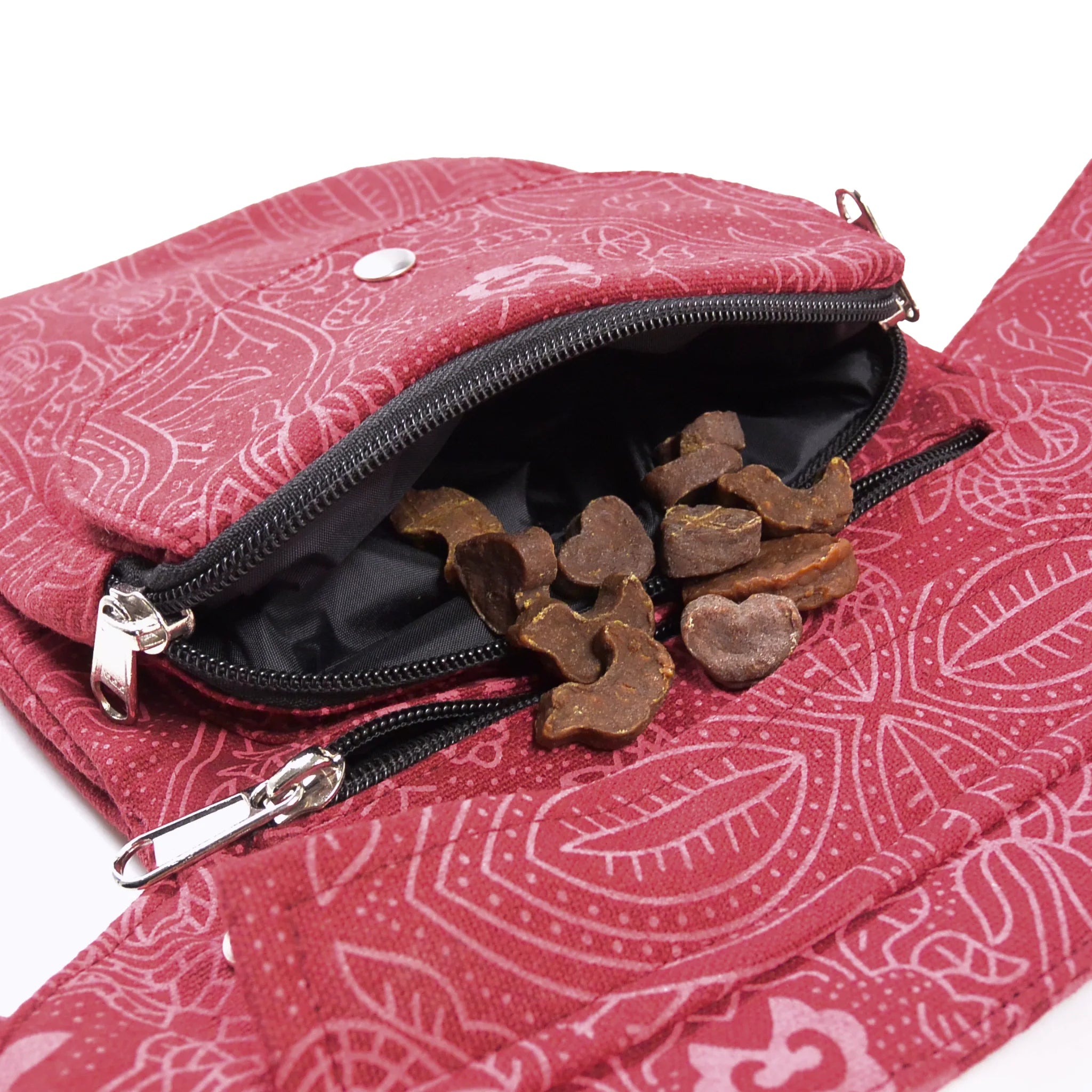 ✔️ 2 separate Leckerlitaschen (Reißverschluss + Druckknopf-Fach unter der Klappe)