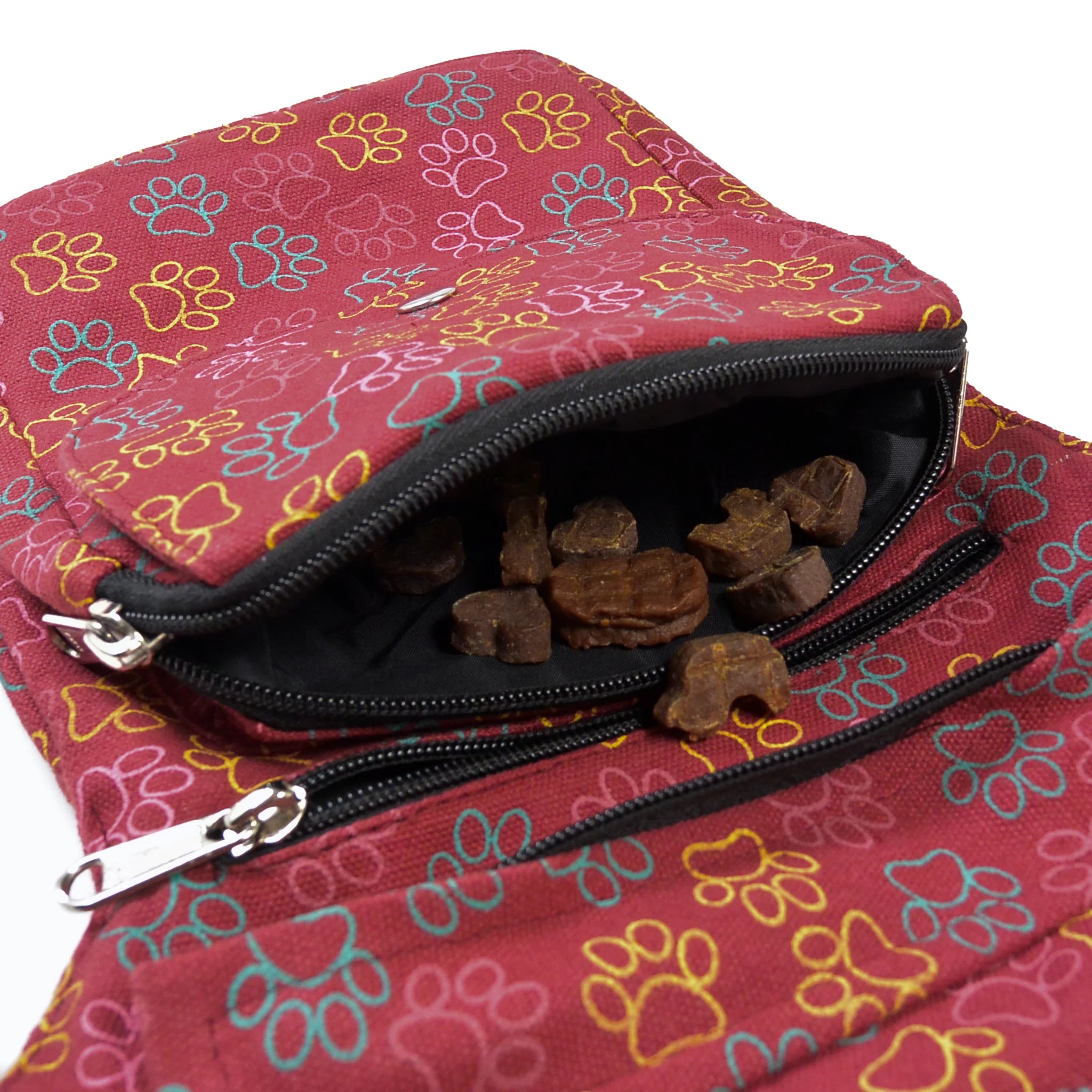 ✔️ 2 separate Leckerlitaschen (Reißverschluss + Druckknopf-Fach unter der Klappe)