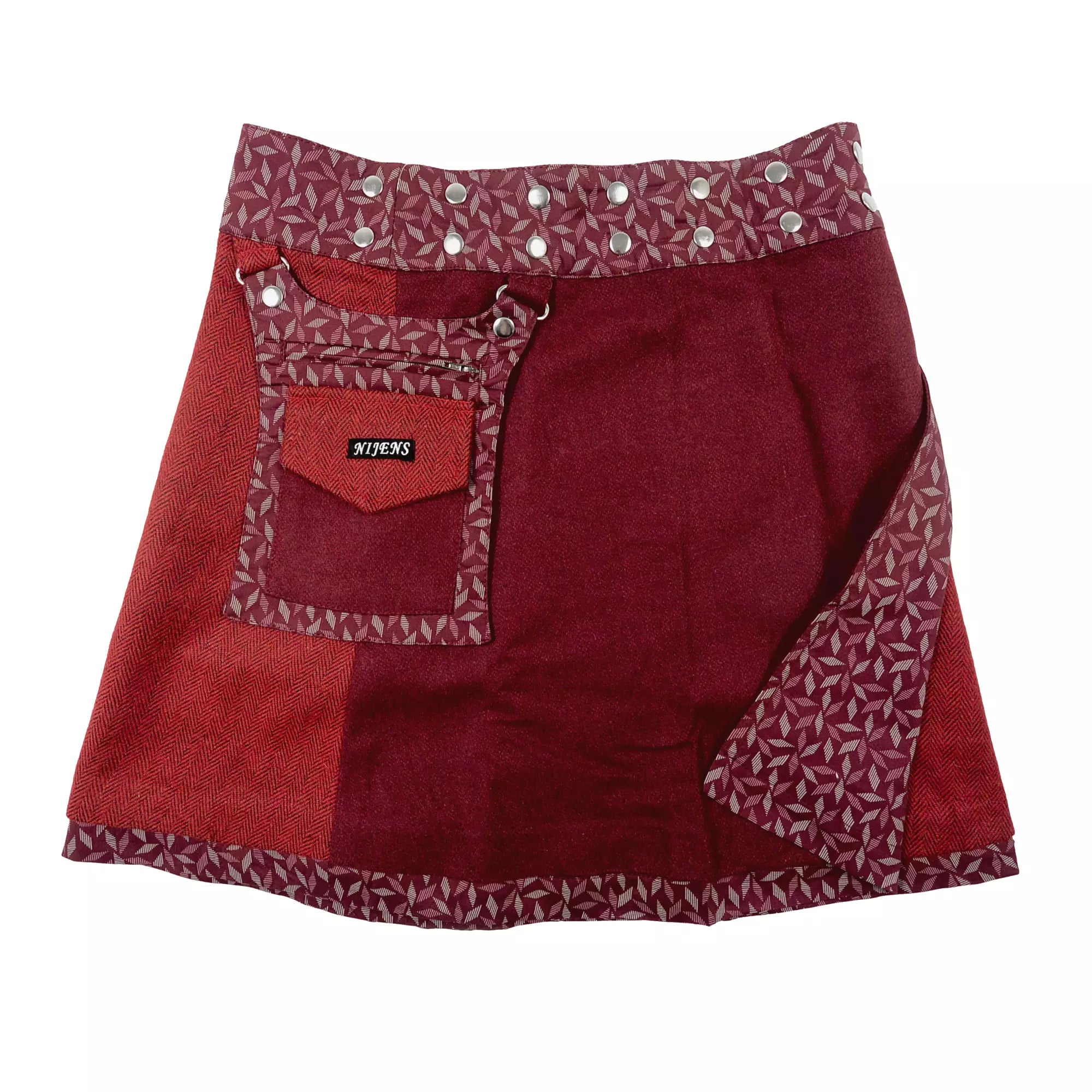 Mit einer doppelten Druckknopfleiste lässt sich der Umfang schnell und bequem einstellen. Eine abnehmbare Tasche macht diesen praktischen Wenderock zu einem funktionalen Blickfang.