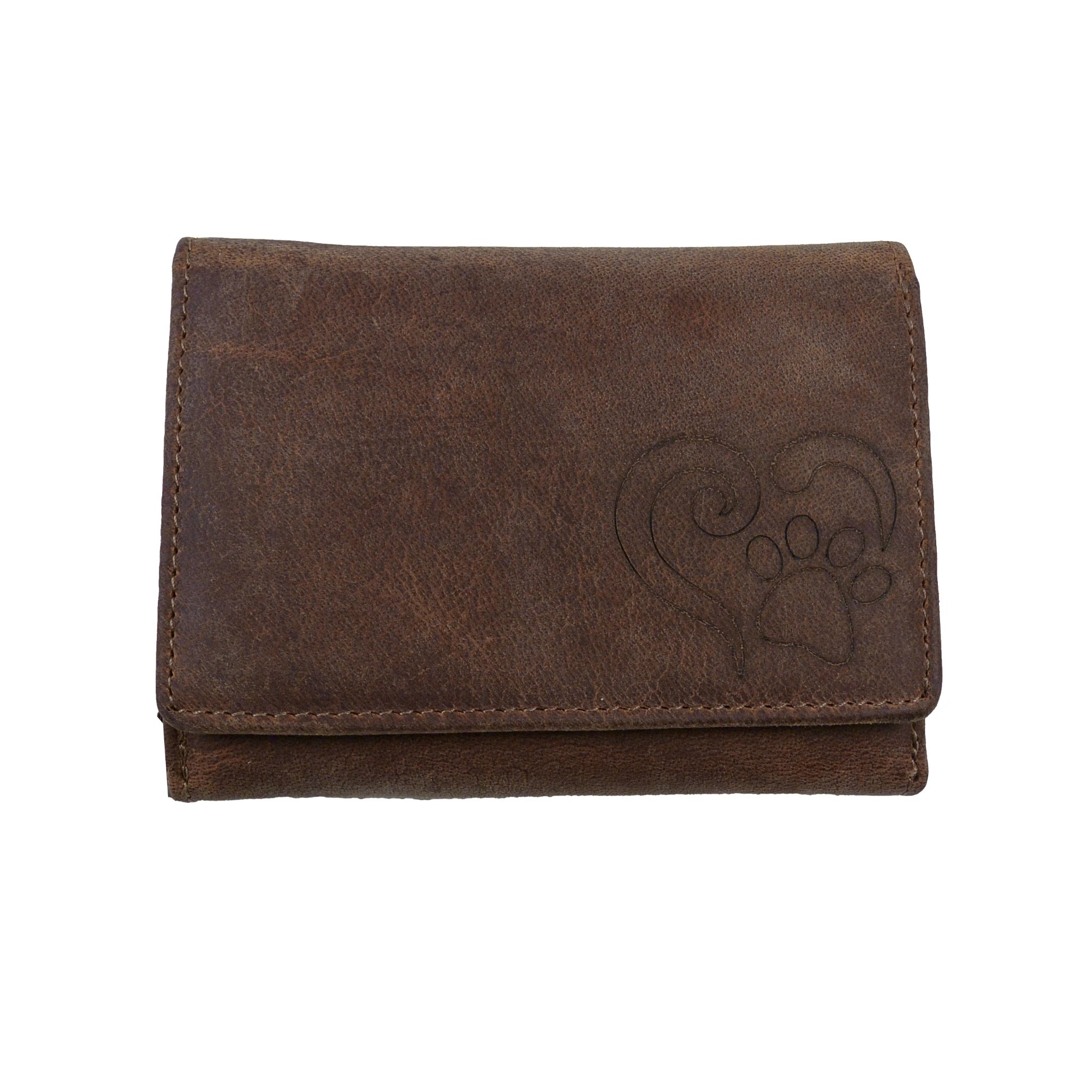 Leder Portemonnaie Geldbeutel mit/ohne Pfote&Herz Prägung - 8083, 1083 TAN
