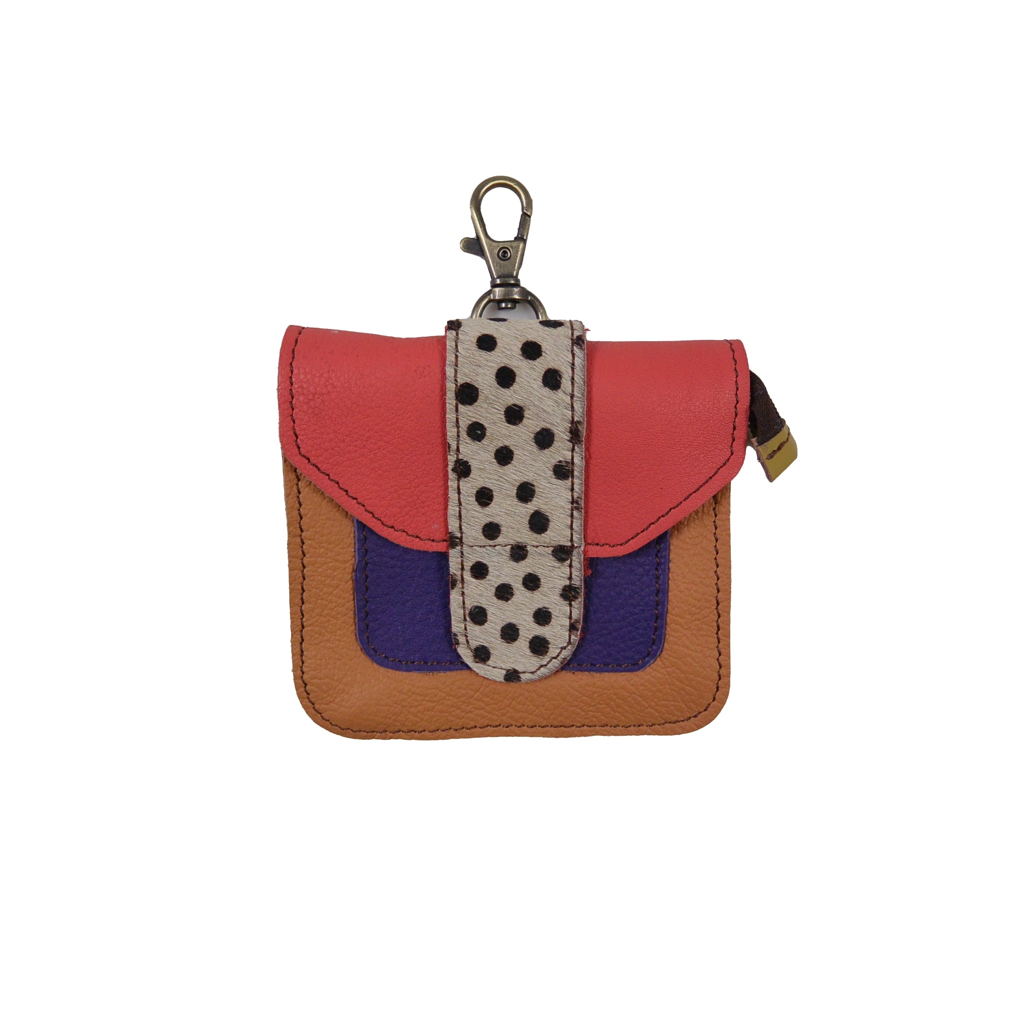 Leder Münzbeutel mit Karabiner & Gepard-Detail – Farbenmix